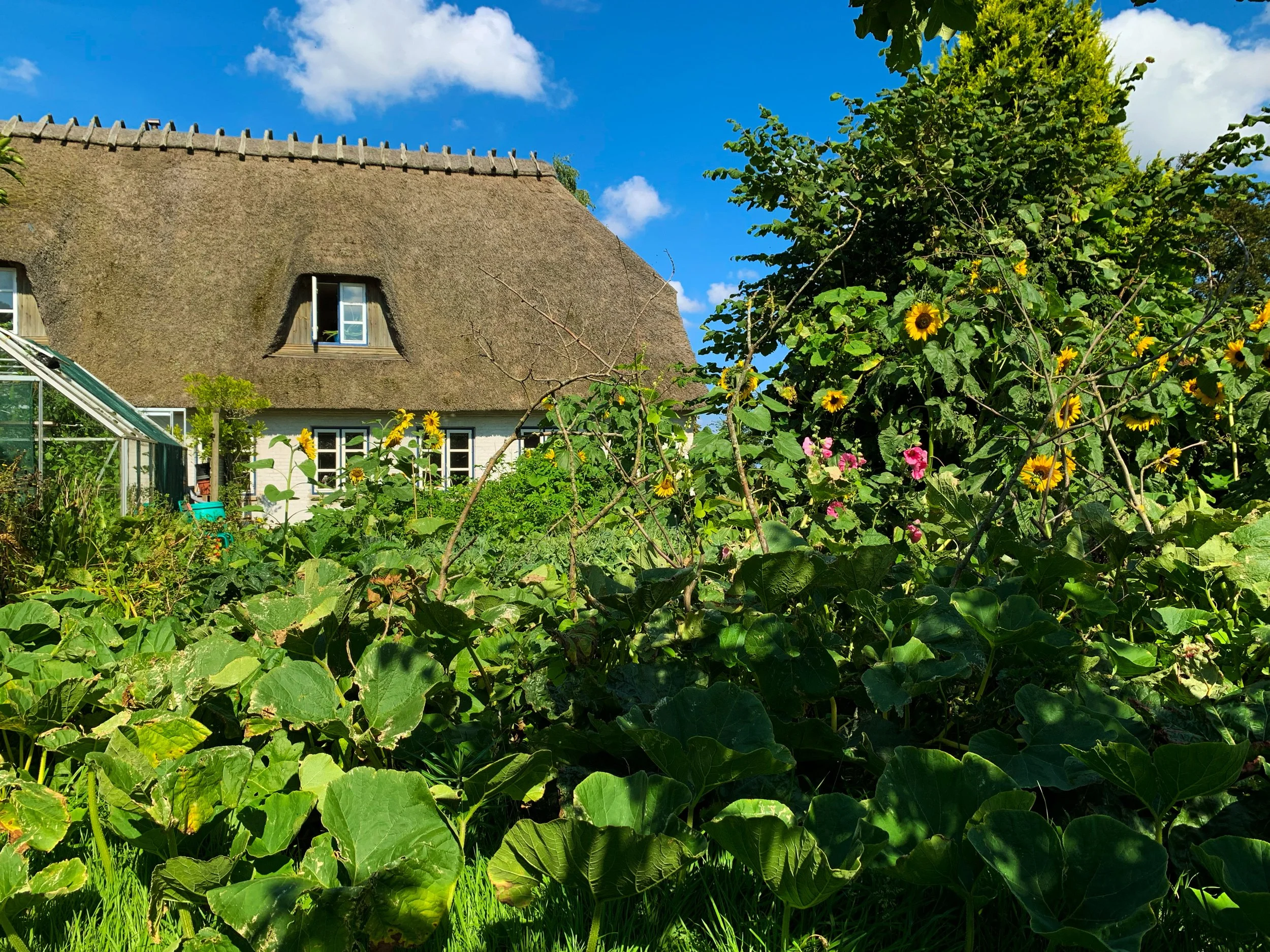 The house rests in nature, embraced by an ancient ash tree and overlooking the sea. The air is clear. The land is alive. The garden grows in permaculture principles. Every element is chosen with care.